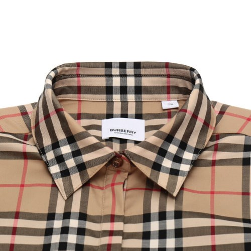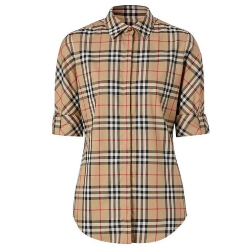 【服装】BURBERRY/博柏利衬衫女士经典Vintage格纹棉质斜纹翻领短袖/长袖两穿衬衫80184751(衣服)