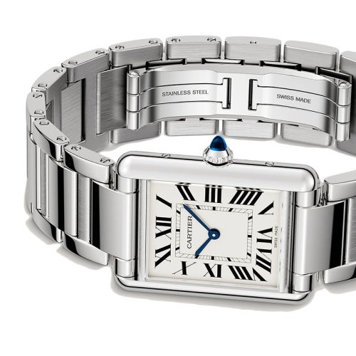 【新品手表】CARTIER/卡地亚 22年秋冬新款 七夕坦克系列 男士白色表盘石英机芯精钢表壳表带大号腕表33.7*25.5毫米WSTA0052