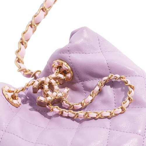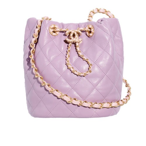 Chanel/香奈儿24新款 女士小号淡紫色羊皮革水桶单肩包AS4769B15845NU932(新品包包)