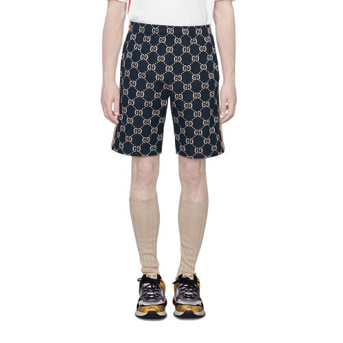 【包税】 GUCCI/古驰 22年秋冬新款 男士蓝色/象牙色纯棉老花提花短裤474632X9V054245