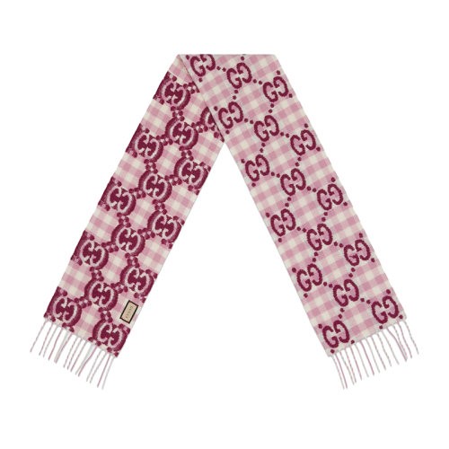 【包税】GUCCI/古驰 22年秋冬新款 儿童款女孩粉色/白色羊毛混纺格纹老花提花围巾6585014KAAL5878(服装)