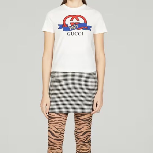 【服装】GUCCI/古驰23新款 女士白色互扣式G921棉质T恤748287XJFND9095