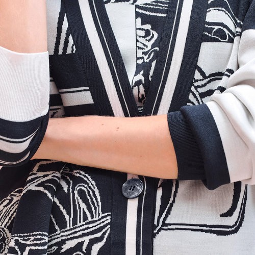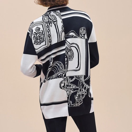 【服装】Hermes/爱马仕24新款 女士黑蓝色桑蚕丝V领无序刺绣毛衣H4E2727D65H34