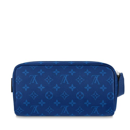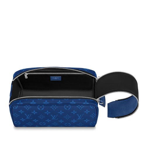 【新品包包】Louis Vuitton/路易威登 22春夏新款DOPP KIT系列 男士蓝色老花帆布配皮银扣拉链开合手拿洗漱包M30849