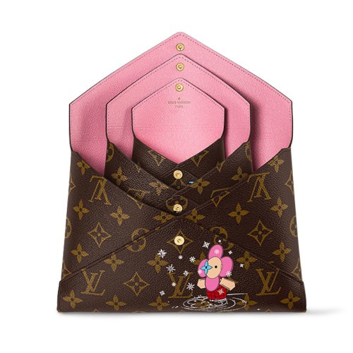 【新品包包】Louis Vuitton/路易威登 23新款 KIRIGAMI女士棕色Vivienne吉祥物套娃三帆布件手拿包 M82655