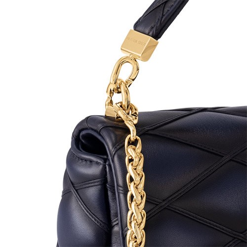 【包税】Louis Vuitton/路易威登 23新款 女士中号海军蓝色菱形绗缝羊皮革扭锁翻盖单肩包 M23682
