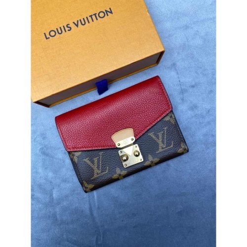 【新品包包】Louis Vuitton/路易威登 Pallas女士涂层帆布棕红色短款钱包(04促销产品)
